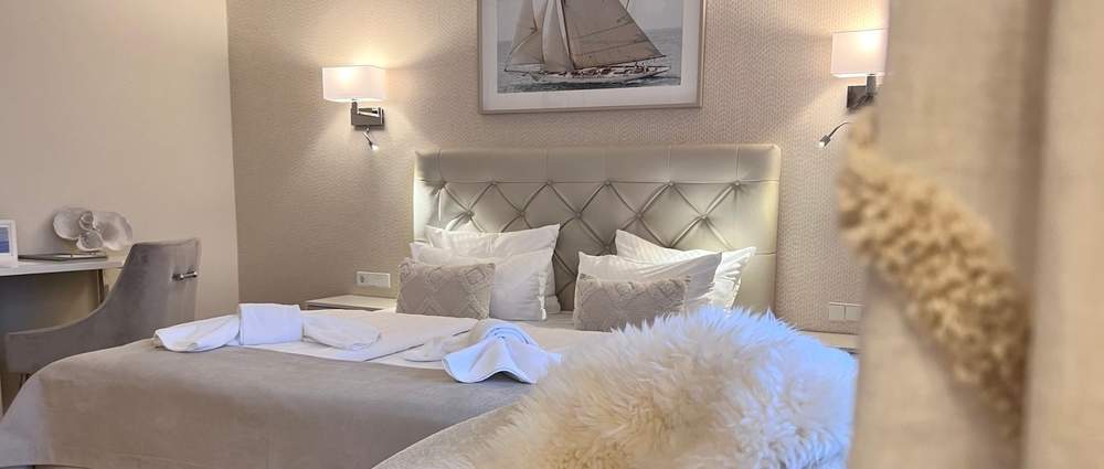 Unsere Suiten gibt es in verschiedenen Varianten: Juniorsuite (Landseite) | Juniorsuite mit bedingtem Seeblick | Juniorsuite zur Seeseite mit Balkon | Captain-Suite. Je nach Verfügbarkeit können Sie im Buchungsprozess ihre Lieblings-Suite auswählen.